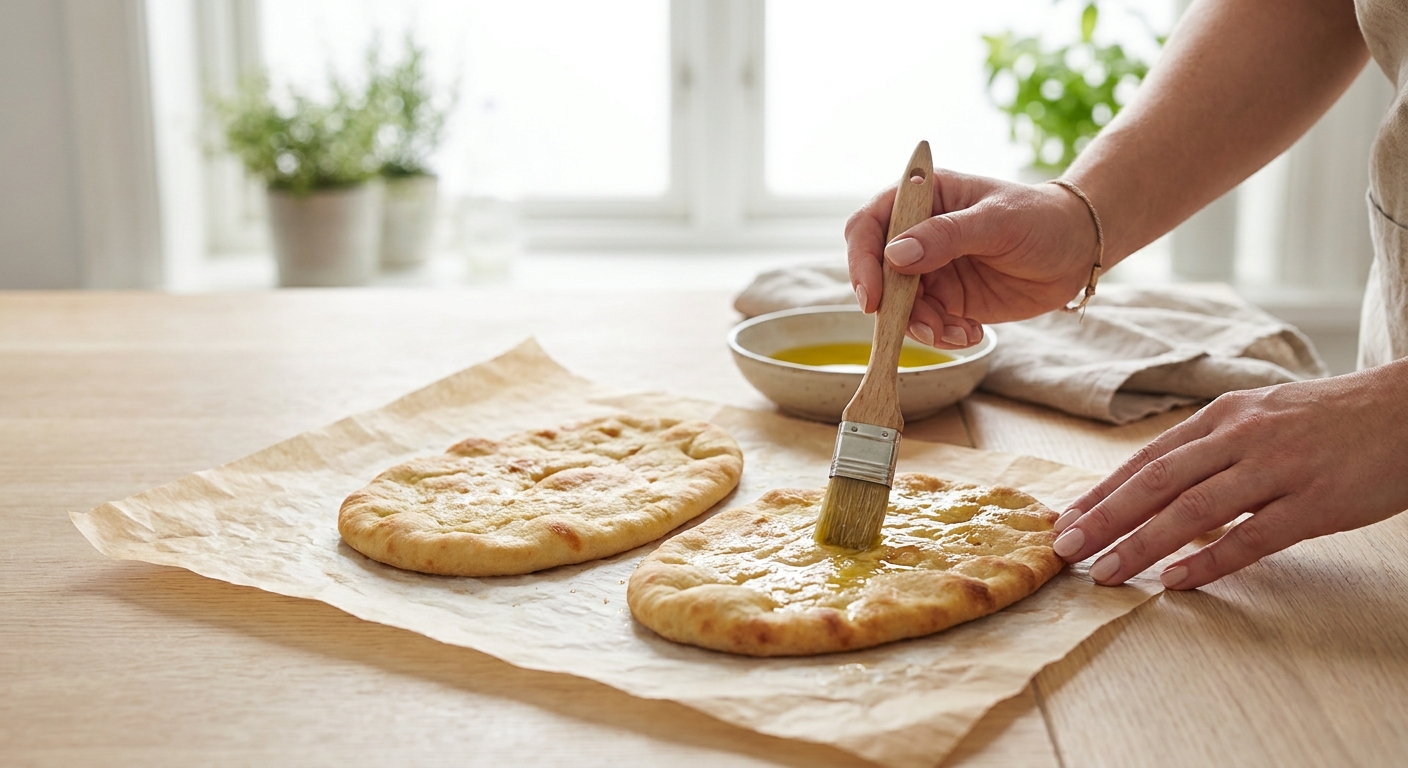 - Lege die Fladenbrote auf das vorbereitete Backblech.