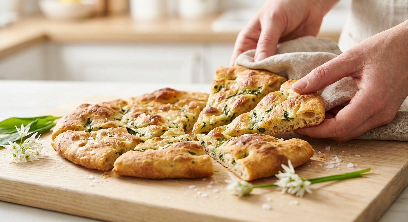 - Serviere die Bärlauch-Fladen heiß und genieße dieses einfache und leckere Gericht!