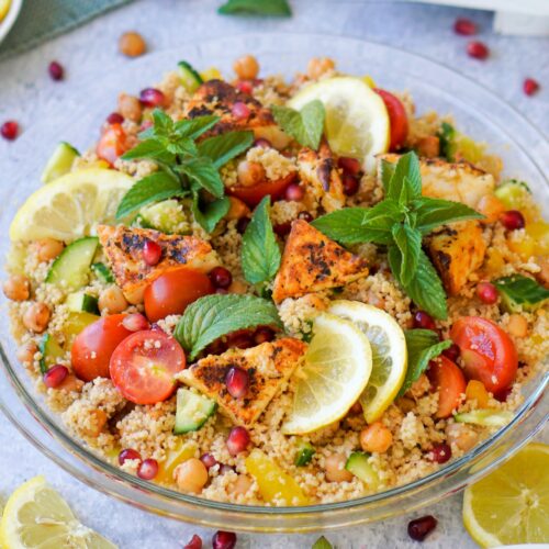 Keyword couscous, Couscous Salat, Granatapfel, Gurke, Kichererbsen, Minze, Paprika, tomate