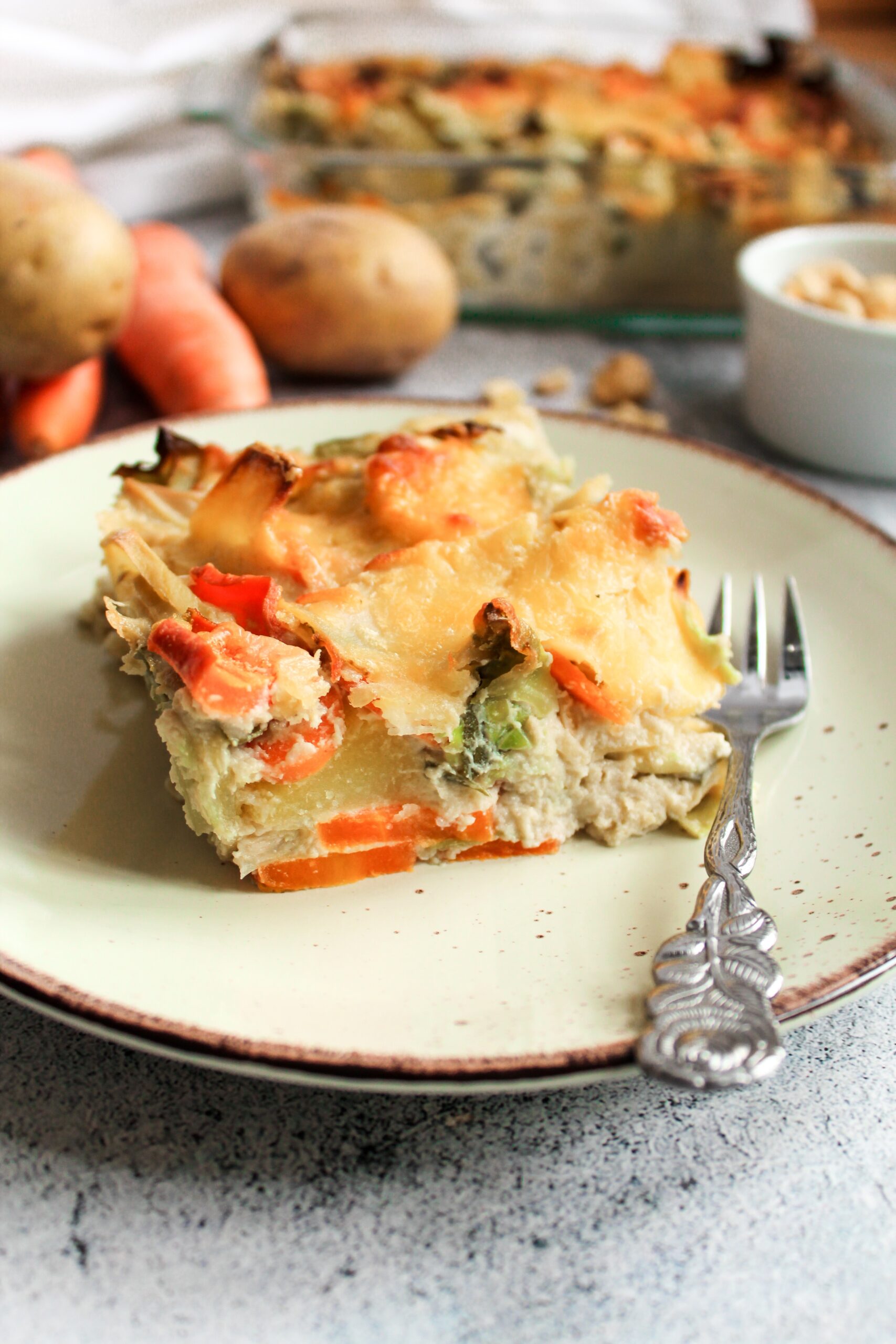 Einfacher Spitzkohl Auflauf mit Kartoffeln, Karotten und Gouda