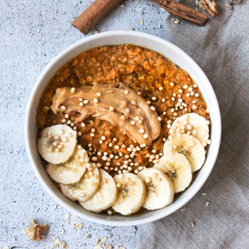 Warum du dieses Kürbis Porridge mit Mandelmus und Banane Rezept lieben wirst