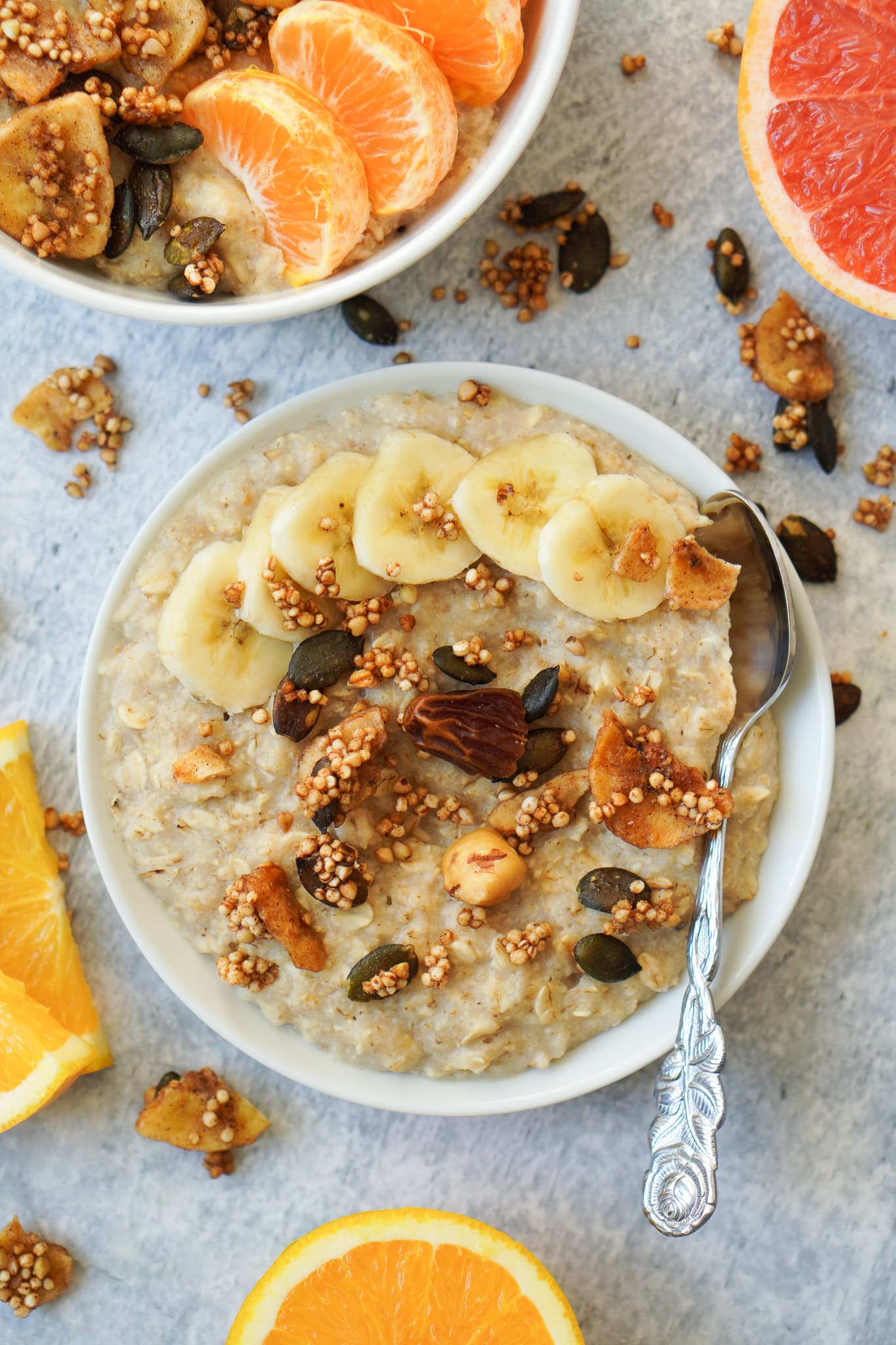 • Gepuffter Amaranth: Gepuffter Amaranth enthält viele Proteine. Ich verwende ihn nicht nur in diesem Porridge sehr gerne, sondern füge ihn auch ab und zu zu Müsli, Joghurt oder Smoothie-Bowls hinzu.