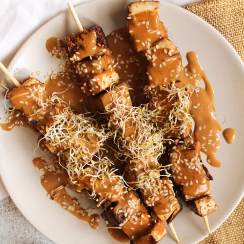 Diese knusprige Tofu Spieße werden Dein Herz erfreuen.