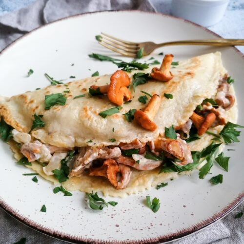 Pfannkuchen sind ein einfaches, und somit geeignetes Rezept für Kochanfänger. Pfannkuchen, auch als Eierkuchen oder Palatschinken bekannt, sind ein Genuss, der zu jeder Tageszeit gegessen werden kann. Ob süß, beispielsweise mit Erdnussbutter und Früchten, oder, wie hier in meinem Rezept, herzhaft – mit Pfifferlingen und Schmand.