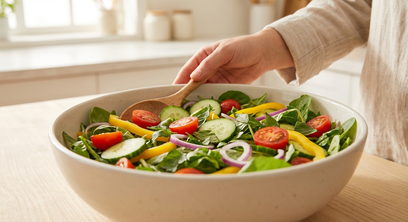 - Aufbewahrung: Nutze luftdichte Behälter. Wenn du den Salat mit ins Büro nimmst, kannst du das Dressing auch separat in einem kleinen Behälter mitnehmen und erst kurz vor dem Essen dazugeben. Das hält das Gemüse extra frisch.