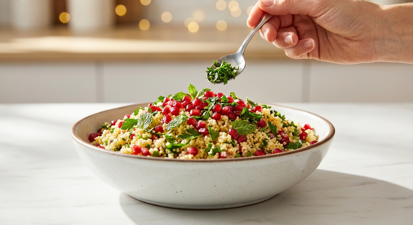 Warum du Protein-Couscous-Salat mit Kräuter-Feta und Granatapfel lieben wirst