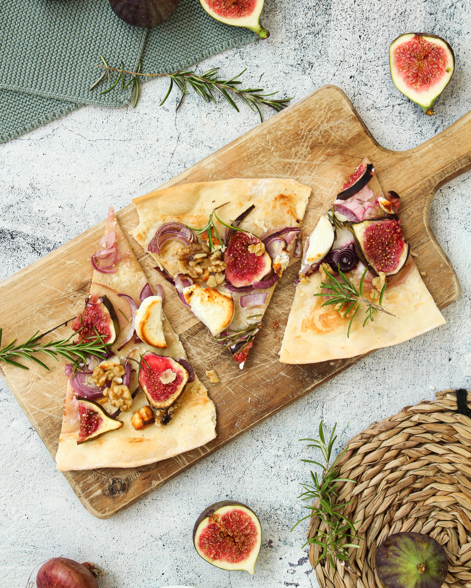Flammkuchen mit Feigen und Ziegenfrischkäse