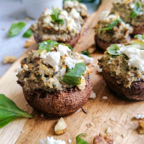 Diese gefüllten Champignons mit Feta, Spinat, Ricotta und Walnüssen wirst du lieben. Sie sind perfekt als Vorspeise oder Beilage geeignet. Zubereitet werden die gefüllten Pilze im Ofen.