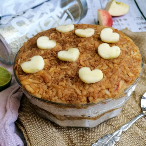 Keyword apfel, Auflauf, Kokosmilch, Mandelmilch, Milchreis, reis, Reisauflauf, Süßspeise, vegan, Zimt