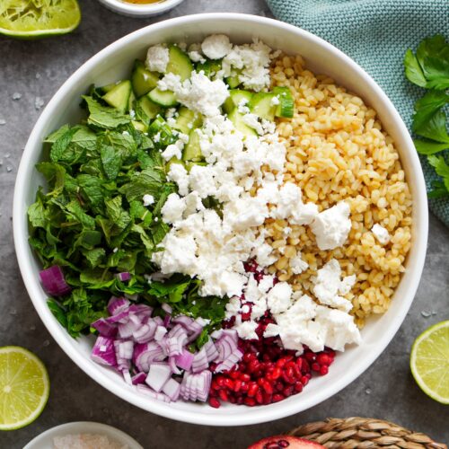 - Bulgur: Die Hauptkomponente des Salats. Du kannst ihn auch durch Couscous oder Quinoa austauschen.